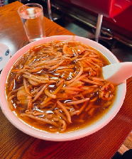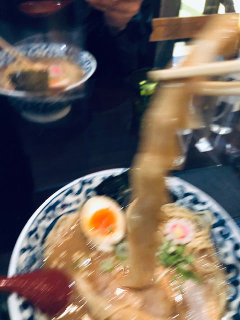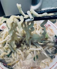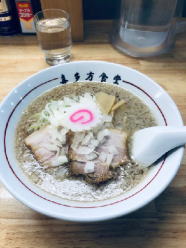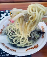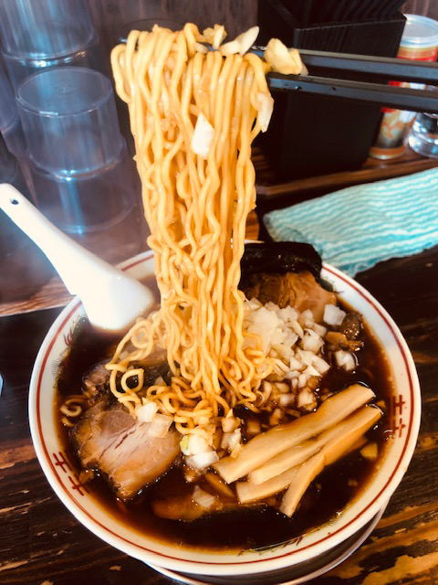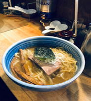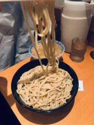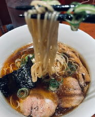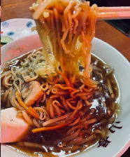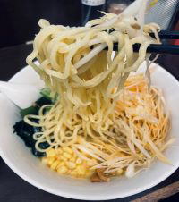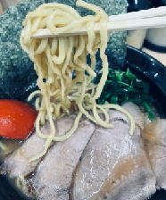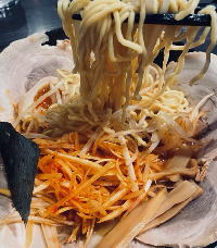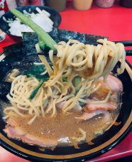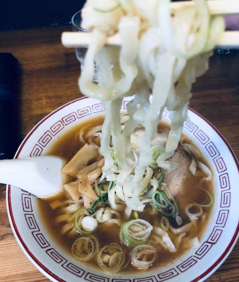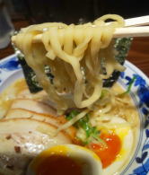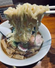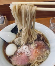 | 煮干し系ラーメンは太麺でした。鶏系の麺は細麵です。 |
