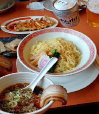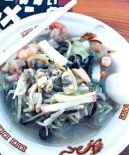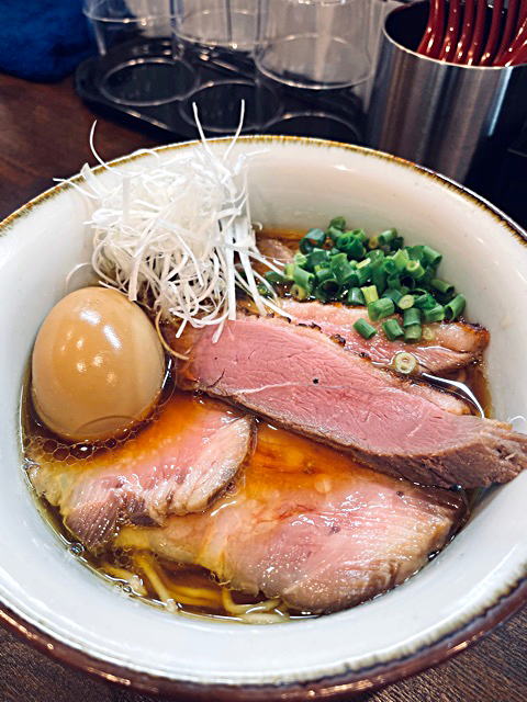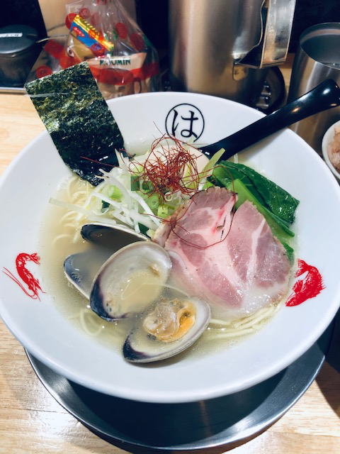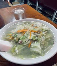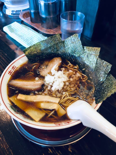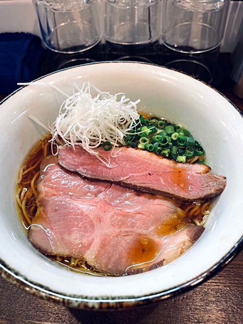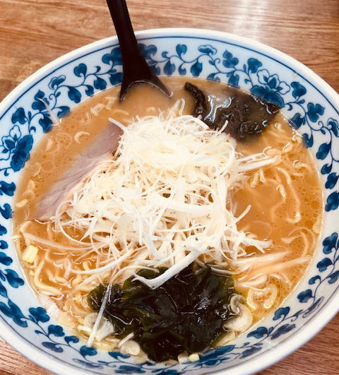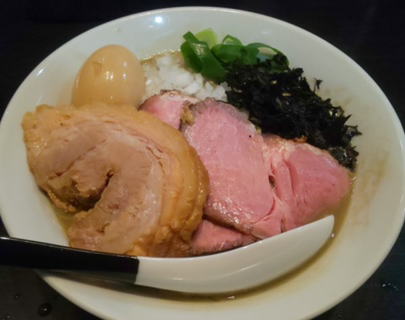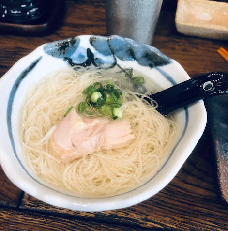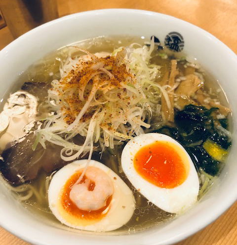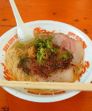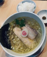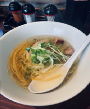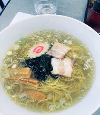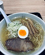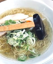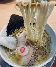 鶏塩ラーメンは麺が細くつるつる系でした。 |