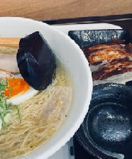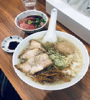 鶏塩ラーメンは小皿に錬り系の塩が着いて来ます。 |
